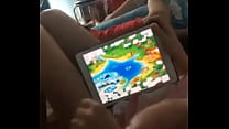 グループ勉強会で友達寝てる間ゲームやりながらそっと彼氏のちんこ手コキ
